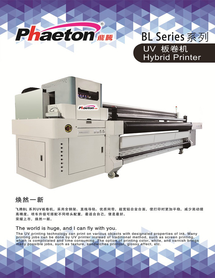 飛騰BL系列UV板卷機(jī),采用全鋼架、直線導(dǎo)軌、優(yōu)質(zhì)網(wǎng)帶,超寬鋁合金臺面,使打印時(shí)更加平穩(wěn),減少晃動(dòng)提 高精度。噴車升級可搭配不同噴頭配置,最適合自己,便是最好。 榮耀上市,煥然一新。